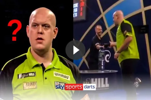 Een opmerkelijk moment deed zich voor toen Michael van Gerwen zaterdagavond het WK-podium op kwam. Hij miste namelijk iets cruciaals en wel zijn dartpijlen die de PDC niet op tafeltje had klaargelegd. Het komisch moment en een verbaasde Van Gerwen is te zien op .