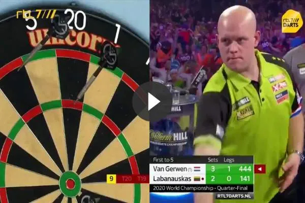 Darius Labanauskas. De Nederlander deed dit als voorbeeld naar zijn tegenstander die op die finish stond in een poging voor een 9-darter. Dit opmerkelijk moment is hieronder te zien.