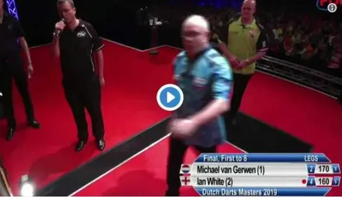 Zoals eenieder heeft meegekregen Michael van Gerwen zondagavond de finale van de Dutch Darts Masters in de beslissende leg van Ian White. Voor het zover kwam had de Nederlander echter nog wel een sterke comeback nodig. Hij kwam namelijk al snel op een 1-4 achterstand maar kwam ijzersterk terug. Hij kreeg het publiek in Zwolle op de banken met onderstaande prachtige 170-finish.