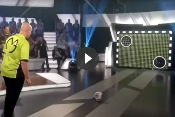 Michael van Gerwen om te zien hoe goed hij met een voetbal om kan gaan. De voormalig nummer 1 van de wereld nam deel aan een Duits televisieprogramma en hoe het hem afging is te zien op .