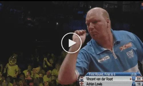 Adrian Lewis met 6-0 van het bord te vegen maar de bulls-eye ging er niet in. Ook de kans op de bulls-eye voor een 6-1 winst ging niet raak. The Jackpot kwam vervolgens ijzersterk terug en verraste de Nederlander nog bijna met een 9-darter maar de dubbel 12 zat de Engelsman niet mee. Kortom een bijzonder interessante partij die de moeite waard is om terug te kijken.