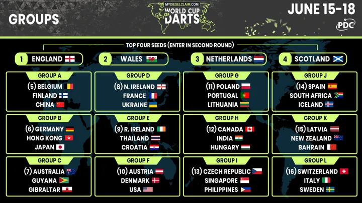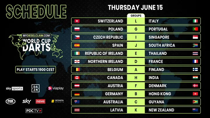 Vanaf 19:00 uur Nederlandse tijd worden vanavond de eerste poulewedstrijden van de World Cup of Darts 2023 gespeeld in de Eissporthalle te Frankfurt, Duitsland.