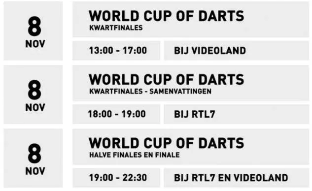 Dit weekend wordt de World Cup of Darts gespeeld en dit zal vanaf de bank uiteraard ook weer te volgen zijn.
