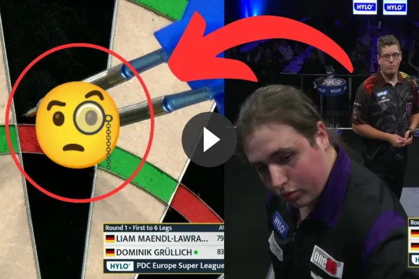 Maar afgelopen weekend gebeurde dit tijdens een officiële wedstrijd op de PDC Europe League in Duitsland en de score blijk nog legaal ook. Hoe dit mogelijk is bekijk je op