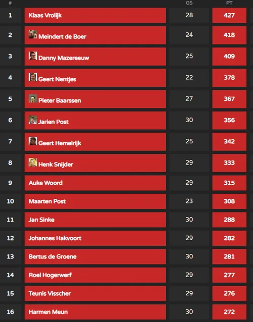 Het wordt steeds spannender wie zich definitief plaats voor de Play OFS , de nummers 1-8 spelen voor de titel Dinsdagavond winnaar, en voor het club kampioenschap.