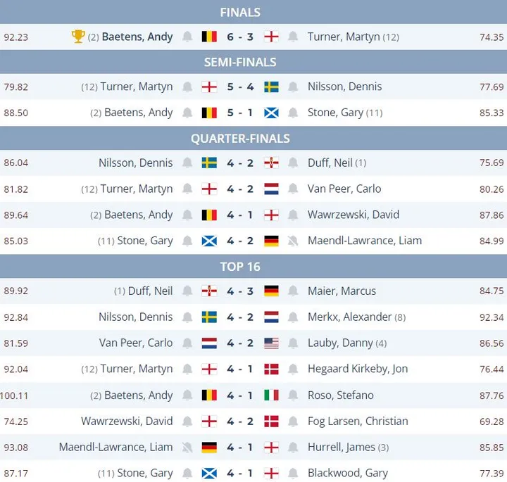 De Belg Andy Baetens heeft de dubbel gepakt in Denemarken. Zaterdag won hij het open toernooi en zondag de masters. Op zaterdag versloeg Baetens de Lakeside wereldkampioen Neil Duff en op zondag was hij de betere in het finale duel met Martyn Turner. Aletta Wajer was de beste Nederlandse dame, Wajer speelde zaterdag de halve finale en op zondag tijdens de masters was ze runner-up.