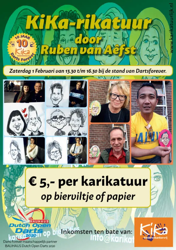 Phil Taylor, nieuwe pijlen en meerdere nieuwe dartsborden. Voor het eerst zal er ook een karikatuur tekenaar zijn. Een karikatuur kost €5,-. De gehele opbrengst van de stand zal in zijn geheel ten goede komen aan KiKa.