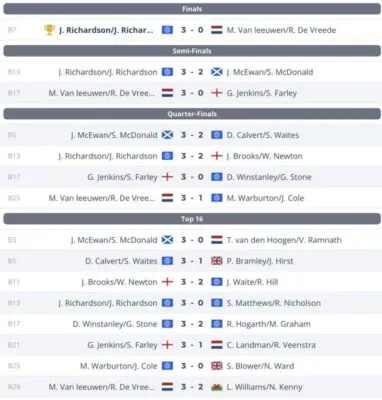 Joshua Richardson een maatje te groot. Met 3-0 wisten vader en zoon het British Open te winnen. Chris Landman en Richard Veenstra bleven steken bij de laatste 16, ook de Nederlandse tandem Tom van den Hoogen en Vinay Ramnath gingen ten onder bij de laatste 16.