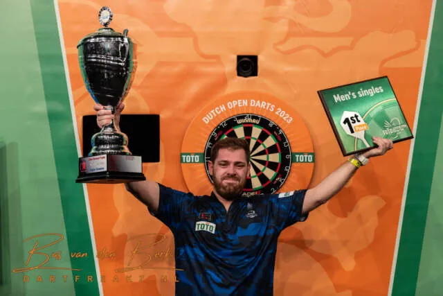 Berry van Peer is de nieuwe winnaar van de Dutch Open 2023. In de finale was hij met 3-1 in sets te sterk voor onze zuiderbuur Andy Baetens in 2-3, 3-0, 3-1 en 3-2. Hij besloot de finale in stijl met een 121-finish op de bulls-eye.