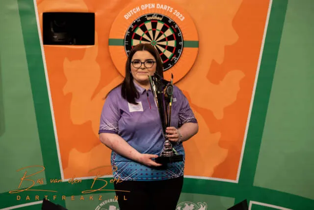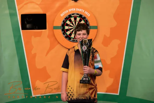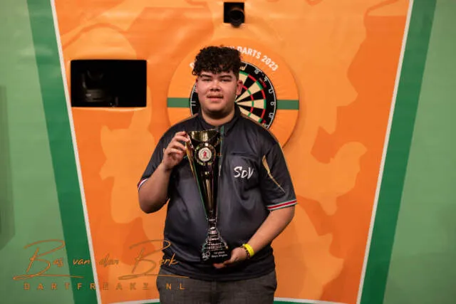 Net als bij de meisjes en aspiranten werd ook hier de spanning opgevoerd toen het aankwam op een beslissende laatste leg. Bij een stand van 3-3 was het Sydnee de Vries die met een 70-finish op dubbel 8 de titel wist op te eisen.