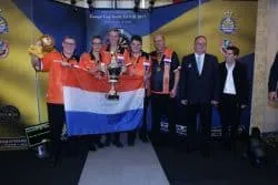 Levy Frauenfelder, Lerena Rietbergen, Layla Brussel, coaches Dick Bontekoe, Ira van der horst en (NDB) begeleider Rinus Loof-van Overmeeren met dit geweldige resultaat in Zweden.
