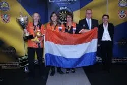 Justin van Tergouw, Wessel Nijman, Marvin van Velzen en Levy Frauenfelder namen het op tegen team England. Met name in de begin was Nederland sterk en liep uit naar en 5-2 voorsprong. Team England wist zich goed terug te vechten tot 6-5 en doordat Wessel Nijman in de 12e leg de dubbel maar niet kon vinden was het bijna 6-6. Het lukte alsnog de dubbel te raken waardoor de voorsprong behouden bleef 7-5. De Needralndse leeuwen onder leiding van Dick Bontekoe gaven de voorsprong niet meer weg. Cole van team England kreeg in de 14e leg nog vele kansen om in de wedstrijd te blijven omdat Marvin van Velzen met de haven in zicht de dubbel maar niet gevonden kreeg, uiteindelijk weet van Velzen de winnende dubbel te vinden voor goud.
