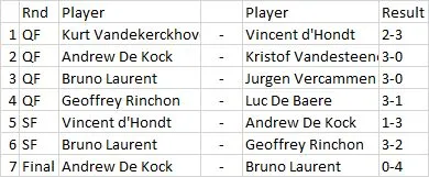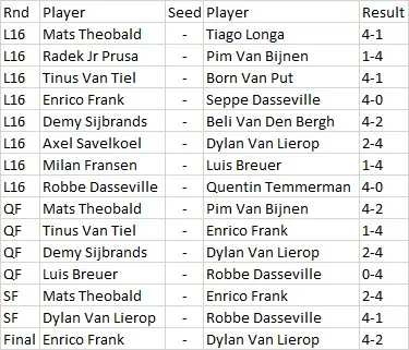 jeugd gingen de titels naar Enrico Frank bij de junioren en Jana Leys bij de meisjes en bij de G darts won Bruno Laurent het toernooi.
