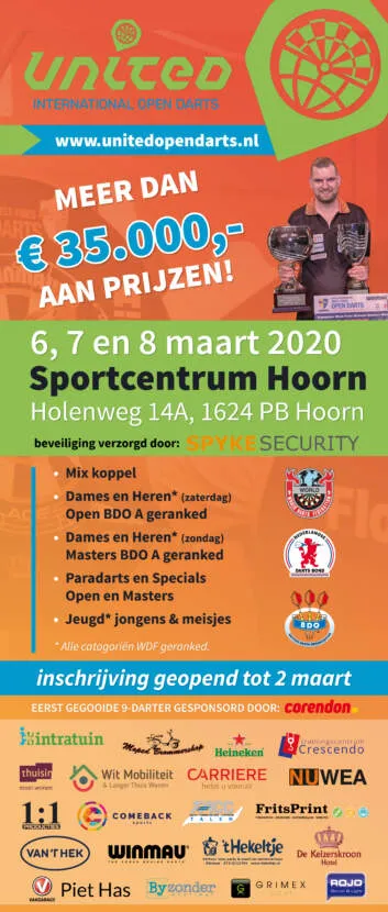 Nog 8 weken tot het United International Open Darts dat op 6, 7 en 8 maart zal plaatsvinden.