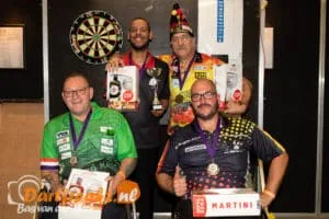 Cliff Ruiter won het G-darts toernooi. In de finale was hij met 3-0 te sterk voor Vincent d'Hondt. Via overwinningen op de Belgen Serge van Belle en Jackie Goethals haalde Smiley de finale. Vincent was in de knock-outfase te sterk voor Bernard Martens en Arie van der Rassel.