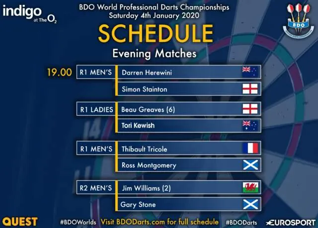 In de avond is staan partijen als Beau Greaves tegen Tori Kewish en