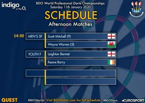 Vandaag zullen de eerste finales van het BDO WK 2020 worden gespeeld bij de dames en de jeugd. Leighton Bennett speelt de finale van de jeugd tegen Keane Barry en de strijd bij de dames gaat tussen Lisa Ashton en Mikuru Suzuki.