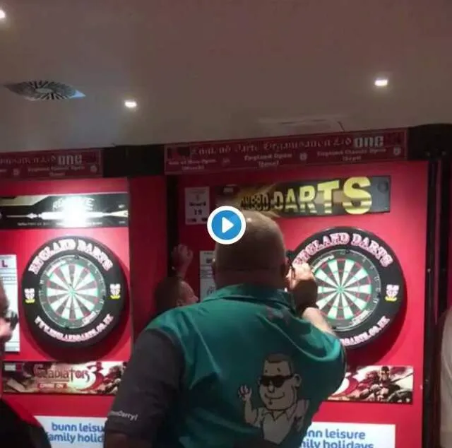 Vanmiddag was Daryl Fitton dicht bij een perfecte leg op de England Classic 2019. Hij gooide namelijk 8 perfecte pijlen via de klassieke wijze van 180, 180, triple 20 en triple 19. Hij mocht dus aanleggen voor de dubbel 12 maar net op dat moment kreeg hij een onaangename verrassing zoals blijkt uit onderstaande beelden.
