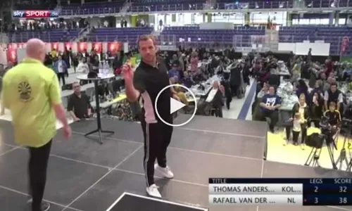 Van der Vaart gooit opmerkelijke '180' en wint partij op podium