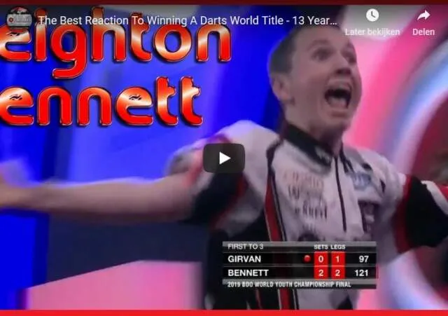 De jeugdtitel van de Lakeside 2019 is gewonnen door Leighton Bennett. Hij was met 3-0 te sterk voor Nathan Girvan en noteerde in de finale een zeer netjes gemiddelde van 86,64. Bovendien besloot hij de partij in stijl waarna er een schitterende reactie volgde waarin ook een rol voor Marco Meijer was weggelegd.