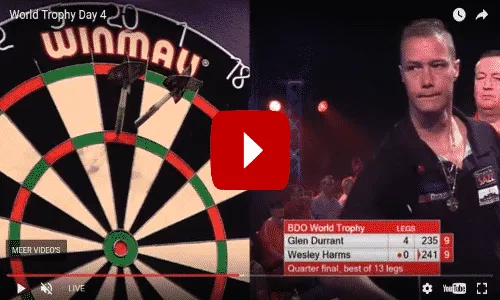 Glen Durrant. De Nederlander kwam vroeg in de partij op een 0-4 achterstand en de partij leek daarmee overtuigend naar de kant van Durrant te vallen. Maar Sparky haalde enkele finishes van 138 en 161 uit zijn hoge hoed en wist de partij volledig te kantelen. Het was zelfs zo overtuigend dat Harms 7 legs op rij won en zo een 0-4 achterstand in enkele minuten omboog in een 7-4 overwinning. Om de wedstrijd te bekijken klik op onderstaande