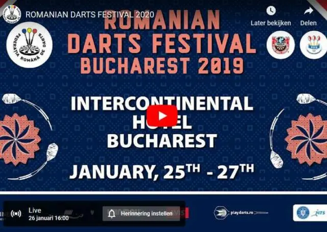 Dit weekend worden de eerste zilver-toernooien gespeeld die meetellen voor de nieuwe WDF-ranking. Zoals eerder vermeld is de WDF hard aan het werk met het opzetten van een ranking met meerdere major-toernooien en een nieuw wereldkampioenschap. Om je hiervoor te plaatsen kan aanstaand weekend een goede stap worden gezet met een degelijke prestatie op de eerste 2 grote toernooien tijdens het Romanian Darts Festival. Een hele reeks Nederlanders zullen hierbij in actie komen en de verrichtingen zullen live te volgen zijn via onderstaande livestream. Klik op 'Herinnering instellen' en je krijgt automatisch een melding zodra de livestream van start gaat.